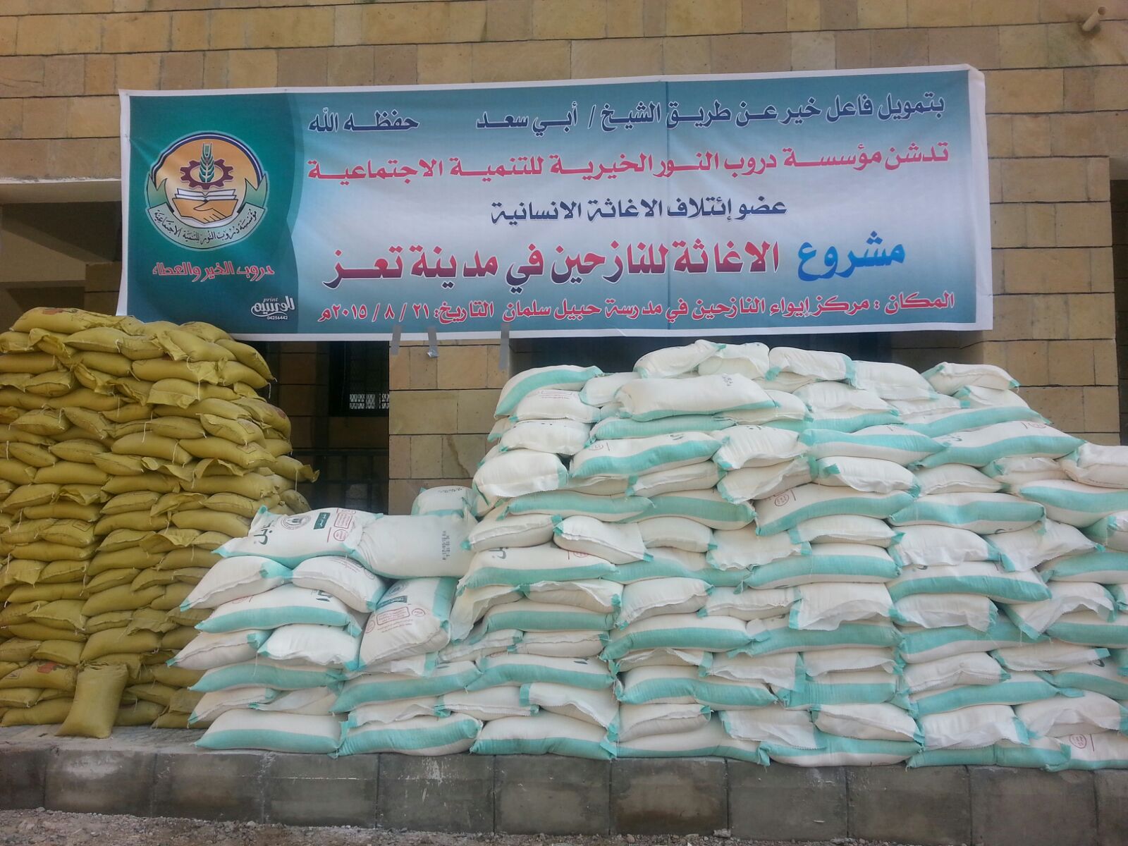 ولقد استهدف المشروع ما يزيد عن مائتين أسرة نازحة في مركز إيواء النازحين في مدرسة حبيل سلمان تاريخ 21 أغسطس 2015 ، وذلك بتمويل من فاعل خير عن طريق الشيخ / أبي سعد حفظه الله .