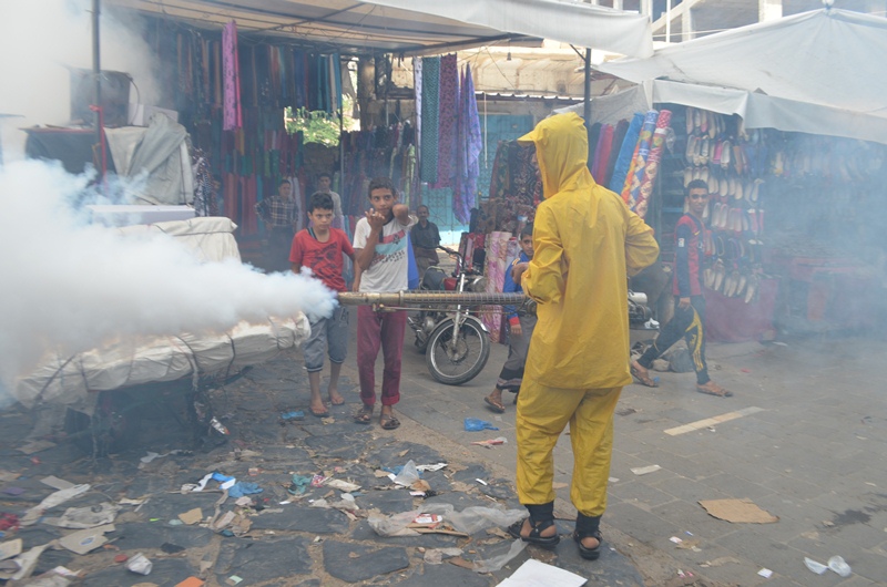 ومن ضمن مشروع المكافحة حملات رش ضباب، وتوعية مجتمعية ، ومبادرات شبابية للنظافة .