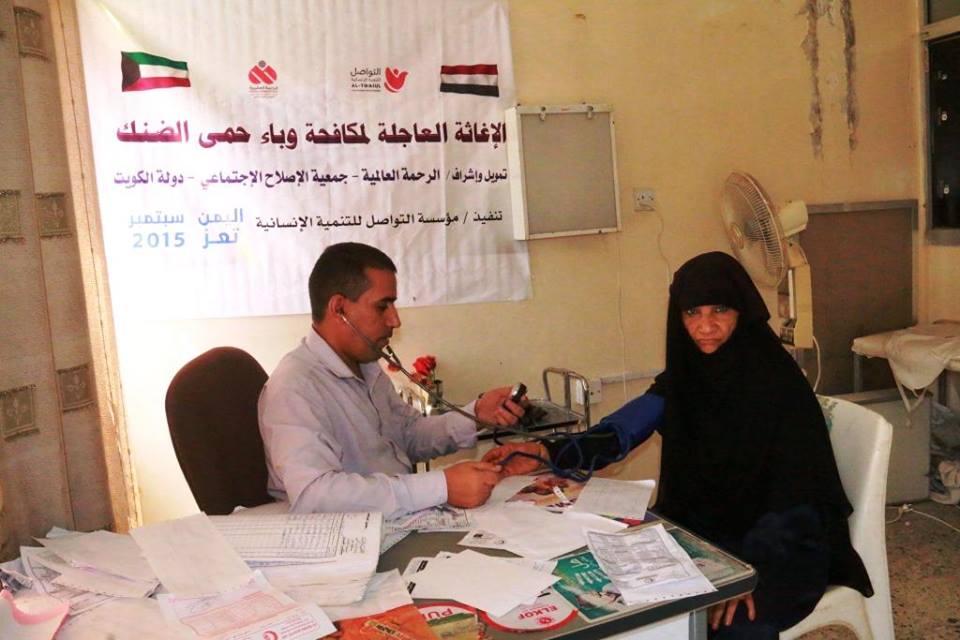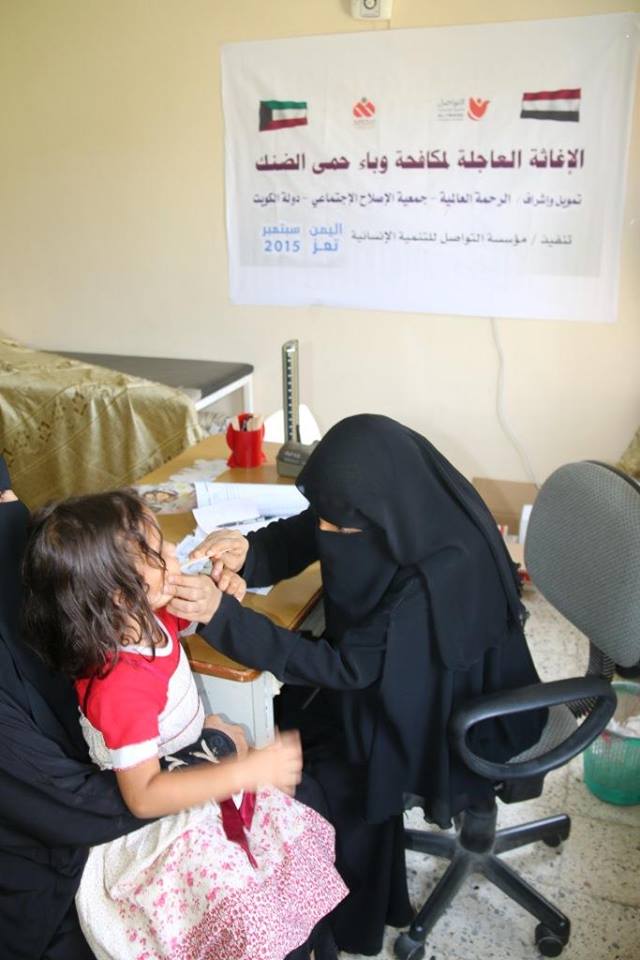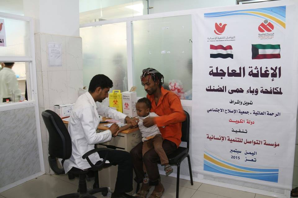 ضمن أنشطتها الإنسانية دشنت مؤسسة التواصل للتنمية الإنسانية يومنا هذا الأربعاء 9\9\2015م الإغاثة العاجلة لمكافحة وباء حمى الضنك في مدينة تعز بمستشفى التعاون، بتمويل وإشراف الرحمة العالمية – جمعية الاصلاح الاجتماعي بدولة الكويت.