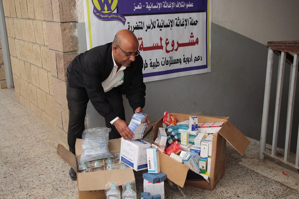 [column width=”1/1″ last=”true” title=”” title_type=”single” animation=”none” implicit=”true”] امت مؤسسة رسالتي لتنمية المرأة -عضو ائتلاف الإغاثة الانسانية –#تعز – بدعم مركز الصحة المدرسية بأدوية طبية، ضمن حملة مشروع “لمسة شفاء”. [/column] Share Post Twitter Facebook VK Pinterest Mail to friend Linkedin Whatsapp Skype تنفيذ مشروع سقيا الماء بتمويل ... مبادرة شباب فيهم خير تدشن مشرو...