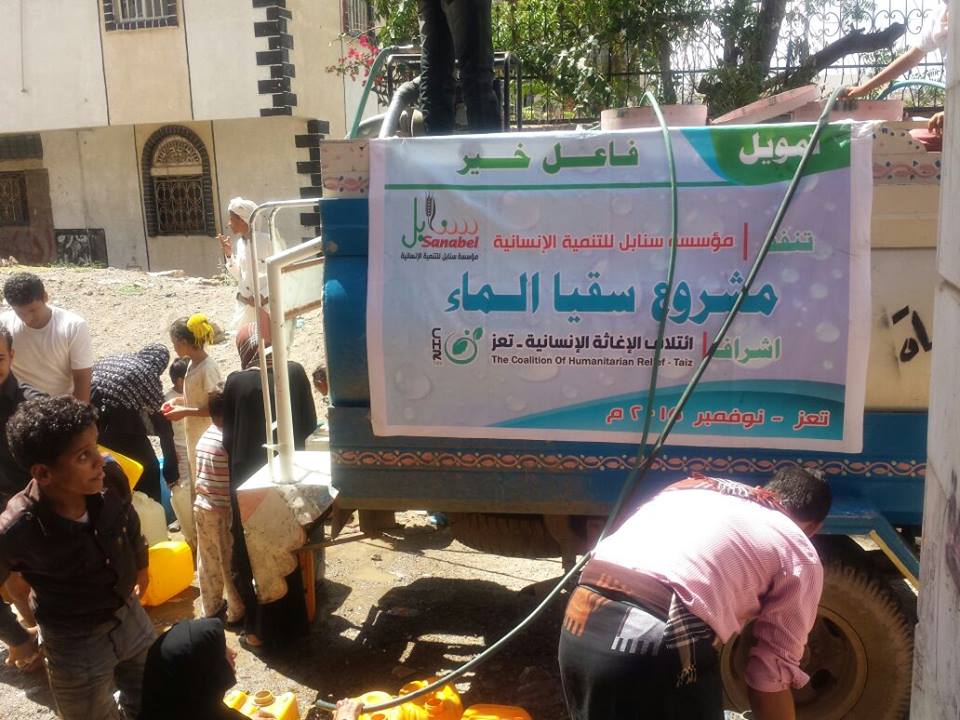 تواصل مؤسسة سنابل للتنمية الانسانية -عضو ائتلاف الإغاثة الانسانية -تعز – توزيع مياه الشرب على أحياء مدينة تعز، ضمن مشروع سقيا_الماء.