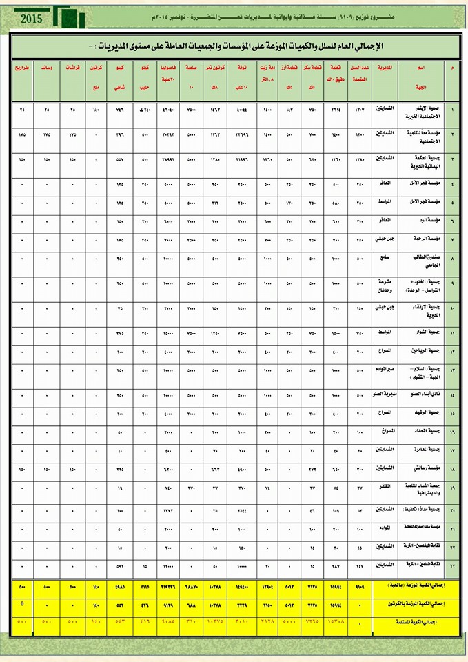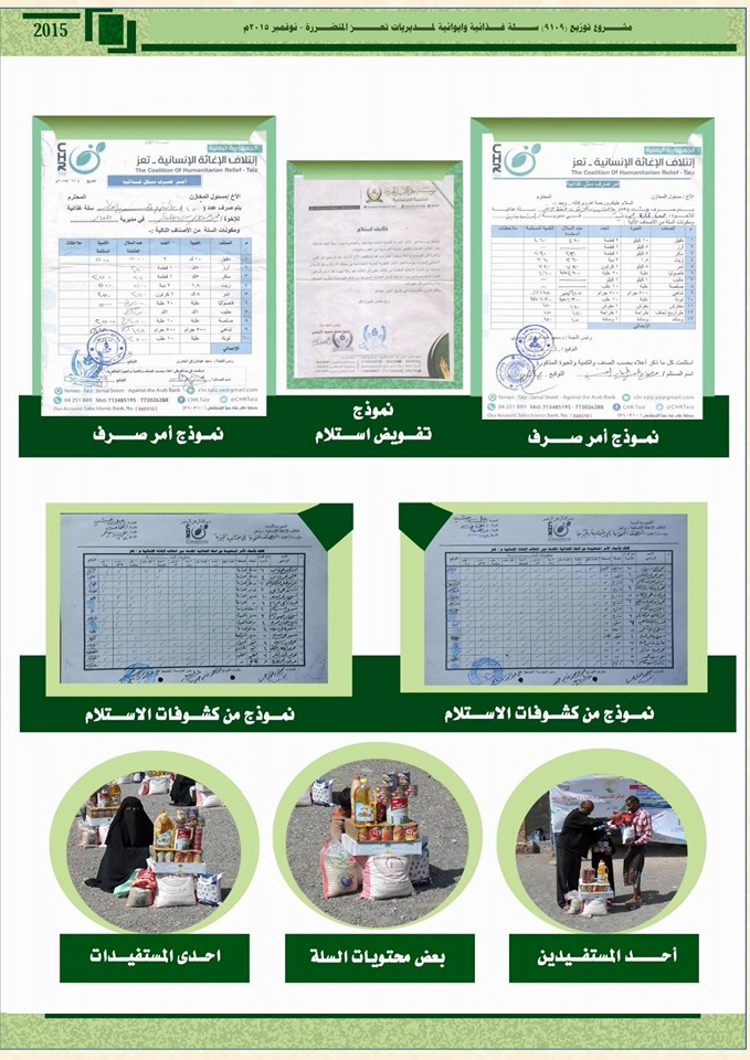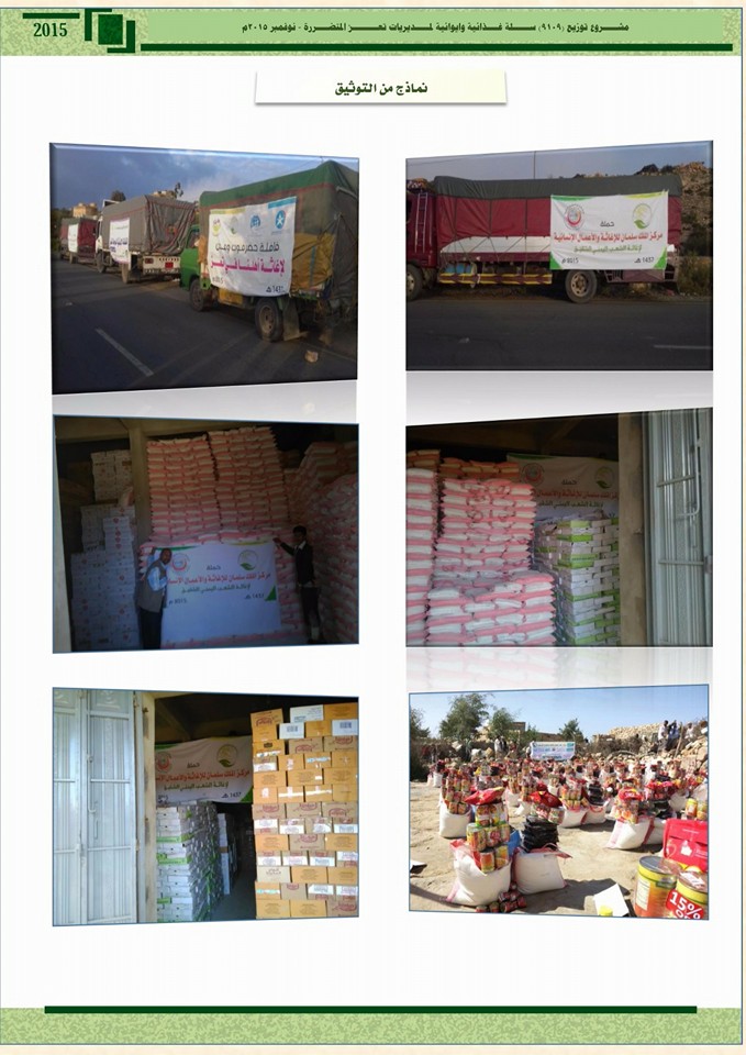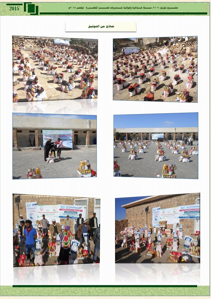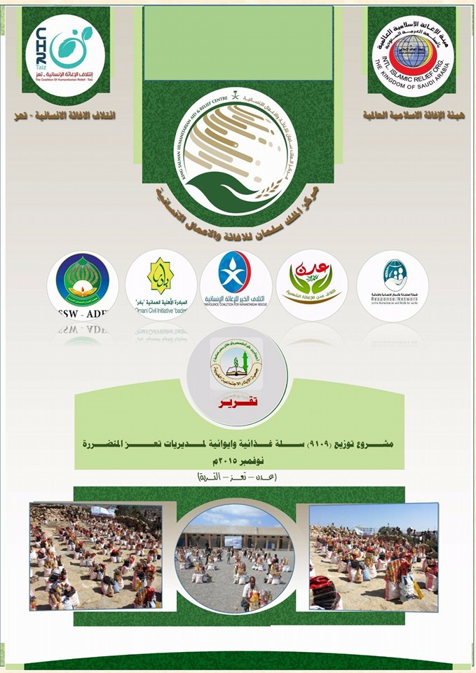 التقرير الختامي لمشروع القافلة الغذائية المقدمة من مركز الملك سلمان، وهيئة الإغاثة الإسلامية، وعدد من الداعمين المحليين، والتي كان قوامها (9000) سلة غذائية، تم توزيعها على 9 مديريات جنوب محافظة تعز، والتي تم توزيعها في ديسمبر الماضي. Share Post Twitter Facebook VK Pinterest Mail to friend Linkedin Whatsapp Skype مديرية الشمايتين: استمرار مشرو... تكريم جمعية الإيثار الإجتماعية...
